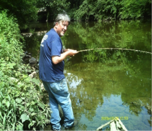 Jim Kennedy fishing at Pennypack Park Creek, Pennsylvania.